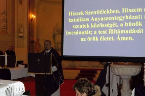 2012.04.01. Virágvasárnap híveink első alkalommal olvashatták kivetítőn a Szentmisén elhangzott énekeket, imákat.